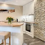 Eine Küchenzeile ist ausgestattet mit einem Herd und einem Geschirrspüler. Die Bushaltestelle Niendorf Hafen liegt ungefähr 10 Fußminuten entfernt.